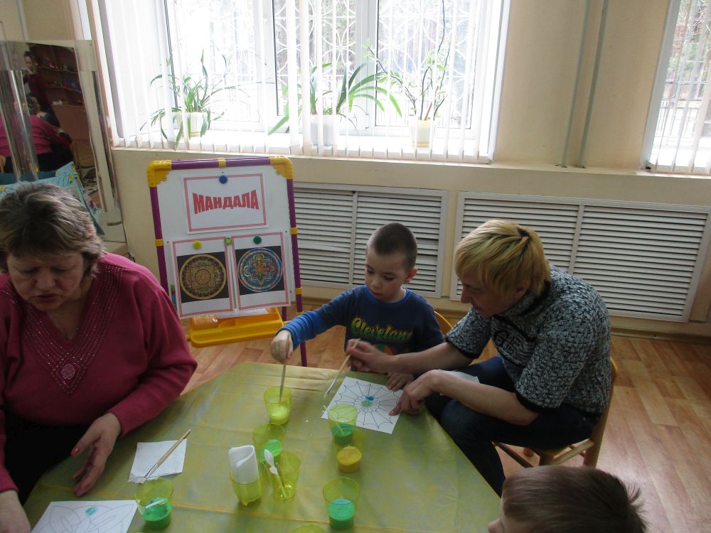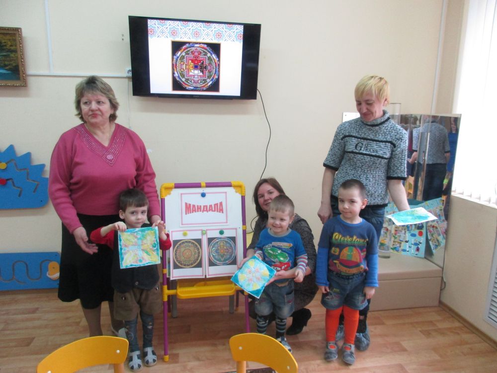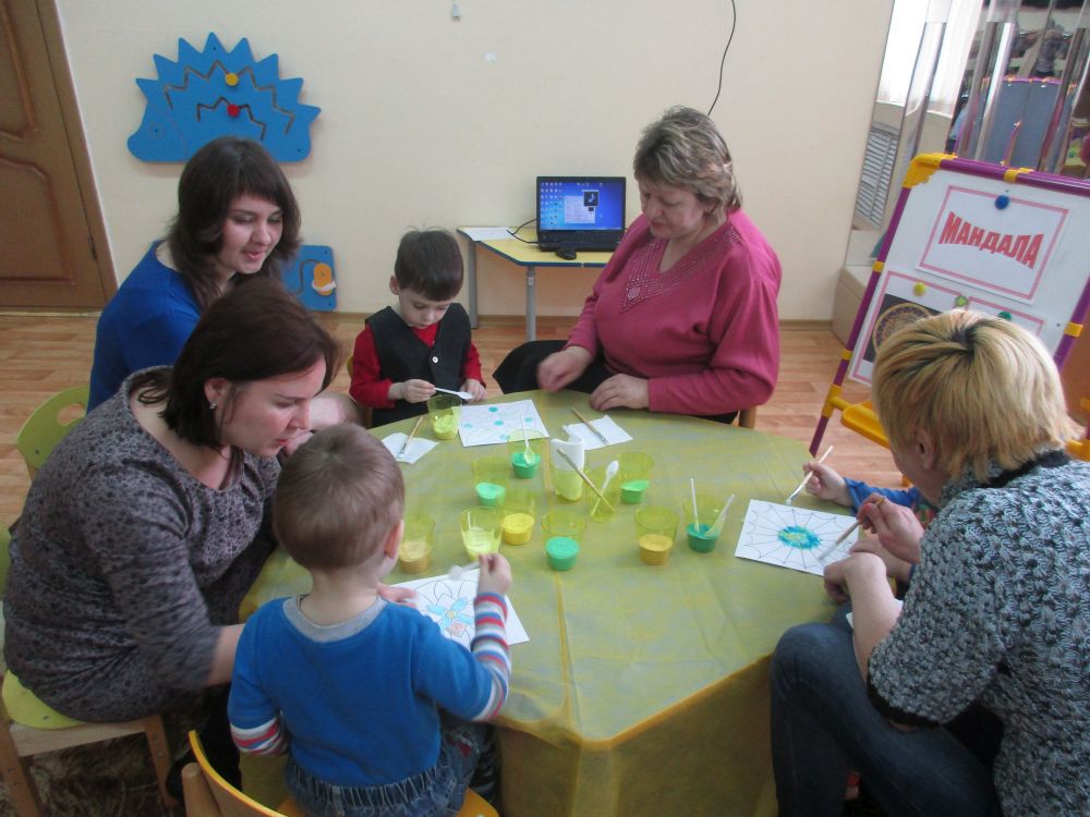 Педагог-психолог Зелинская А.С. провела консультацию с родителями на тему: «Психологическое и эмоциональное развитие детей дошкольного возраста». Родители вместе с детьми приняли участие в практическом занятии по определению внутреннего мира ребенка с помощью изображения «Мандалы» с использованием цветного песка. В завершении педагог-психолог дала советы родителям по результатам диагностики эмоционального состояния детей.