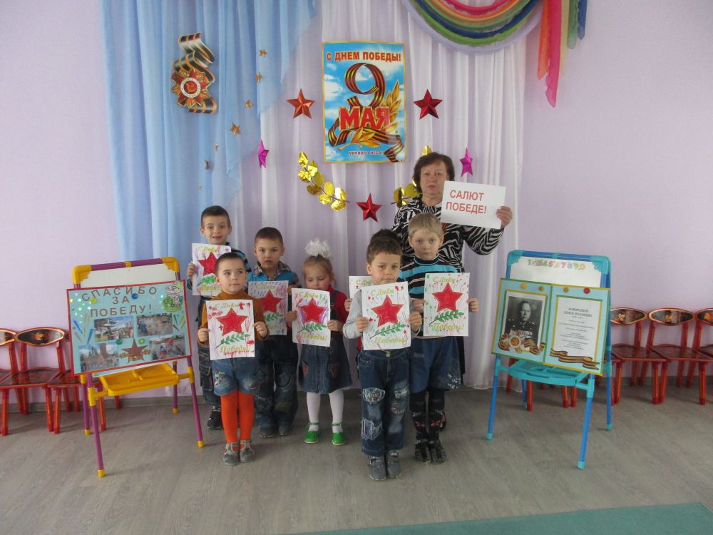 В праздничный день 9 Мая воспитатели вместе с детьми совершили экскурсию к зданию, на котором установлена мемориальная доска маршалу С.Ф. Жаворонкову, в честь которого названа улица, где находится наш детский дом. Дети возложили цветы и прочитали стихи о войне. В течение всего дня воспитатели знакомили детей с детской литературой о героях войны, рассматривали военную технику, рисовали «Звезду героя». Мероприятия, проведенные в этот день, помогают воспитывать у детей патриотические чувства и уважение к героям войны.