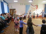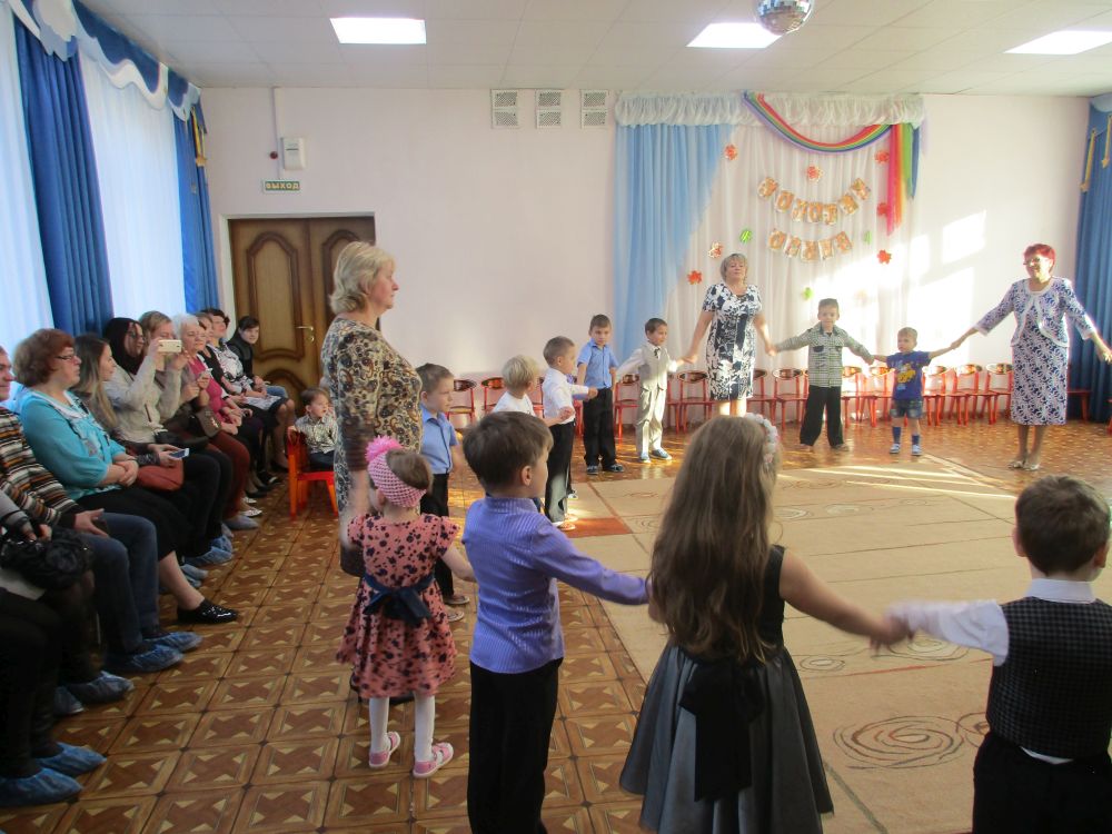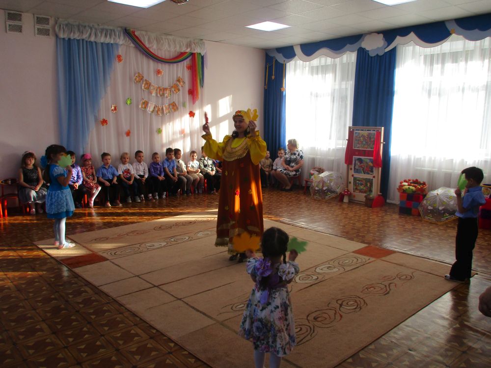 Затем родители приняли активное участие в празднике «Золотая осень». Гости праздника «Осень», «Пугало огородное» вместе с детьми танцевали, играли, пели песни, отгадывали загадки. Дети показали инсценировку сказки «Репка». Все вместе с родителями в хороводе «собирали» осенний урожай и, конечно, все дети заслужили подарки от «Осени».